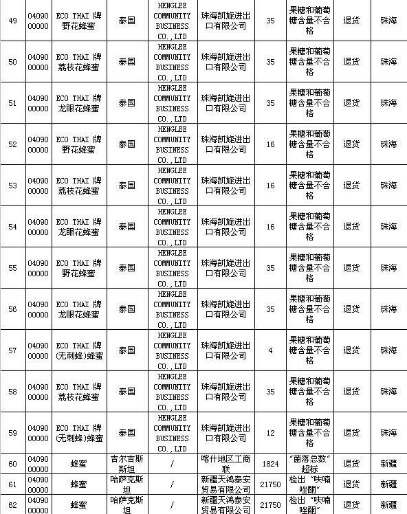 附:9月不合格進(jìn)境蜂蜜信息截圖