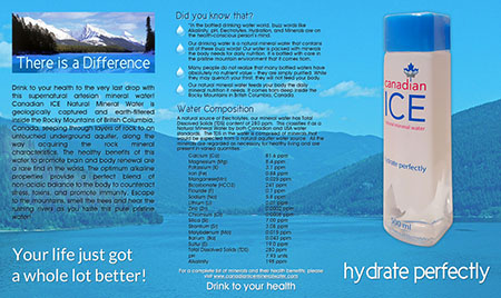 二十一世紀(jì),人們更加注重健康,以提高生活質(zhì)量和生活品質(zhì),健康消費(fèi)呈幾何似增長(zhǎng)。大千世界,都市里的人們生活在重重壓力之下,又飽受著面對(duì)各種污染的現(xiàn)實(shí),直接反映在人們的食品和飲料上。眼前呈現(xiàn)在人們面前的這款加拿大ICE天然礦泉水產(chǎn)品,恰恰是提供給人們?cè)趯?duì)日常生活飲用水上的一個(gè)新的絕佳選擇。