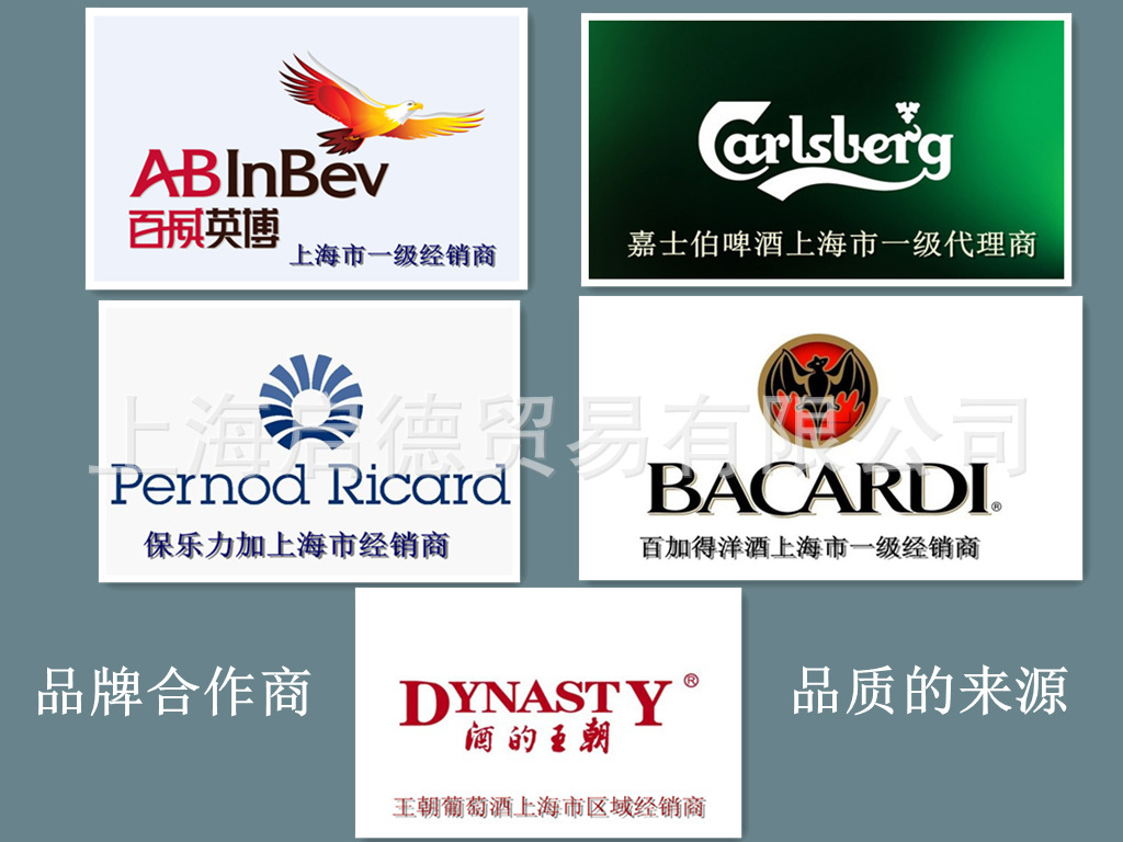 上海啟德貿易有限公司:專業(yè)經(jīng)銷批發(fā)各國進口啤酒:法國1664、智美、督威、萊福、教士、林德曼、羅斯福、馬杜斯、粉象、森美爾、修道院、卡斯特、圣佛楊、西麥爾、科羅娜等。洋酒:軒尼斯、馬爹利、人頭馬、芝華士、黑方、紅方、杰克丹尼、各類威士忌、干邑白蘭地、單一麥芽、伏特加、朗姆酒、金酒、龍舌蘭、力嬌酒、威末酒、苦艾酒、茴香酒等。進口飲料:巴黎水、依云水、圣培露水、普娜、斐濟水、蔓越莓、都樂果汁、匯源果汁、SK果汁等。國產(chǎn)啤酒:百威、喜力、青島、嘉士伯、虎牌、雪花、燕京、珠江等。白酒:五糧液、茅臺、劍南春、洋河、小糊涂仙、郎酒、瀘州老窖等。黃酒:古越龍山、石庫門等品種齊全,價格優(yōu)惠,關鍵貨品保真,可開酒類流通隨附單。公司面積120平,倉庫面積800平,自配車輛5輛。我公司經(jīng)營酒水行業(yè)已有15年,經(jīng)過公司領導,全體員工的不懈努力與追求已經(jīng)在同行和廣大客戶群體中建立了極好的口碑與信任.現(xiàn)在我公司已經(jīng)與多家大型品牌運營商簽訂了長期穩(wěn)定的合作關系:百富門,保樂力加經(jīng)銷商,比利時啤酒經(jīng)銷商,德國啤酒經(jīng)銷商。百威、嘉士伯經(jīng)銷商等。如果您愛酒,賣酒,送酒,收藏酒就請與我們聯(lián)系。我們竭誠為您服務,您的滿意是我們永恒的追求,因酒而相識是您和我的緣分。期待和您合作.